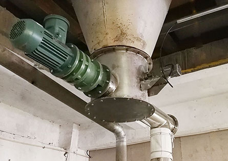起拱是卸料漏斗工作中經常發生的有害現象,它會堵塞物料流動,破壞卸料轉運工作的連續性和可靠性,甚至造成整個機械化裝卸運輸系統和生產流程的中斷。起拱的因素很多,除與物料的粒度、形狀和濕度等特性有關外,漏斗的結構和幾何形狀對起拱也有很大影響。如粘性物料容易形成粘性的料拱;大塊礦石易在卸料口形成機械性卡咬的料拱。 常用的破拱措施有機械攪拌、機械振動和氣動等方法: ①機械攪拌法:采用人力或機械攪拌件直接插入斗內,破壞料拱。②機械振動法:采用電磁式或超聲波式振動器振動斗壁的某一局部,破壞料拱。大型漏斗可做成3段,采用柔性聯接,中段可整體振動,這種漏斗稱為振動漏斗。 ③氣動法:將壓縮空氣直接噴射在粉末物料內部(不適用于易燃物料),或在斗壁內裝設氣囊使氣囊間歇鼓脹收縮,對粉末物料產生橫向推力,消除料拱。由于物料特性以及料層厚度、壓實度和存放時間等因素多變,外力破拱措施的效果并不穩定,應與防拱措施結合采用。對于大塊礦石產生的機械性卡咬起拱,可采用小型雷管伸入卸料口爆振,使料拱崩塌,但須采取安全防護措施。